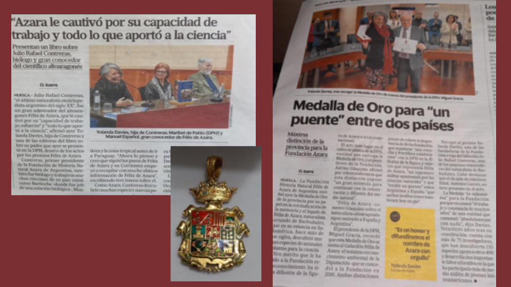 Desde hace 25 años, en España, la Diputación de Huesca entrega un premio y realiza actividades para recordar a Félix de Azara. Este año nos invitaron del 20 al 25 de febrero para asistir y participar de esas actividades. Por eso viajé con Laura Barone, invitadas por la Diputación mencionada. En ese marco, se presentó una nueva edición del libro “Julio Rafael Contreras, 1933-2017: el último naturalista enciclopedista argentino del siglo XX”, cuya primera edición publicó la Fundación Azara en 2019.