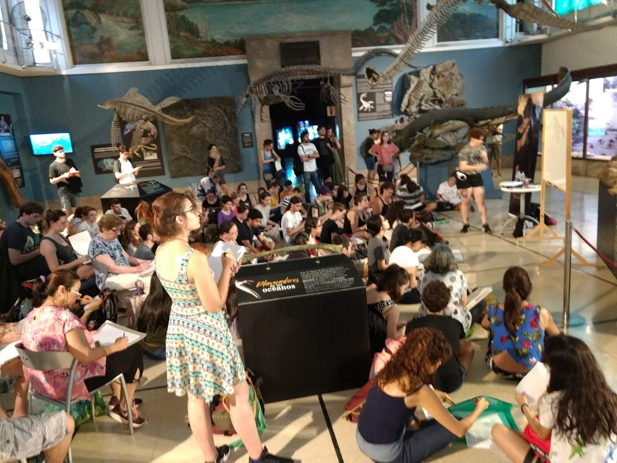 Más de un centenar de personas se reunió el último 23 de febrero en la Sala de Paleontología de Vertebrados, para participar de una sesión especial de dibujo abierta al público. La actividad estuvo enfocada en las exhibiciones de dinosaurios y estuvo a cargo de la profesora María Zancolli, docente de la Carrera de Dirección de Animación y Multimedia de la Universidad del Cine.