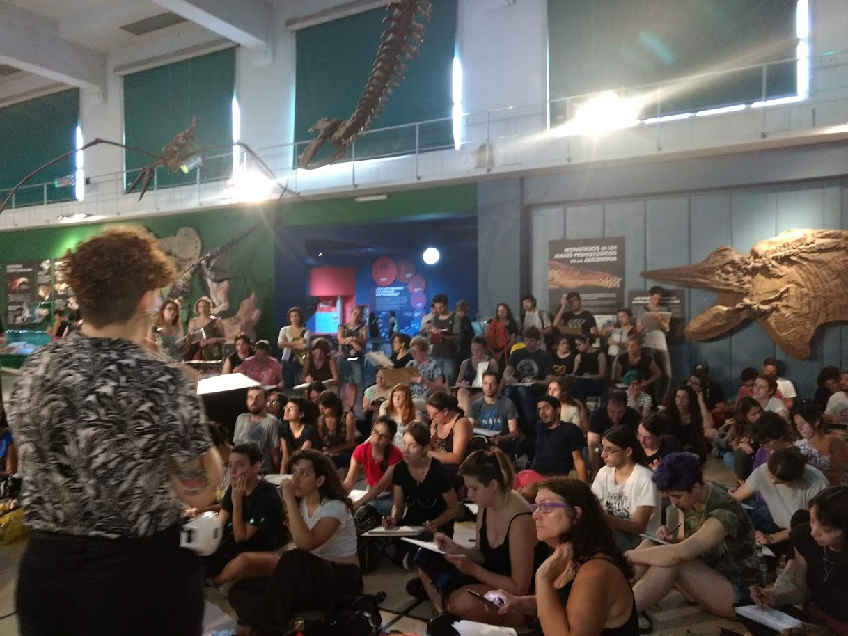 El encuentro consistió en una explicación, sobre aspectos estructurales del dibujo de animales, y en un espacio para que los asistentes pudieran dibujar libremente, utilizando como modelos los dinosaurios de la sala y recibiendo devoluciones por parte de la profesora. La actividad tuvo una duración total de tres horas y fue organizada por Marina Santoro, coordinadora de la carrera de Animación de la Universidad del Cine, y la división de Museología y Educación del MACN.
