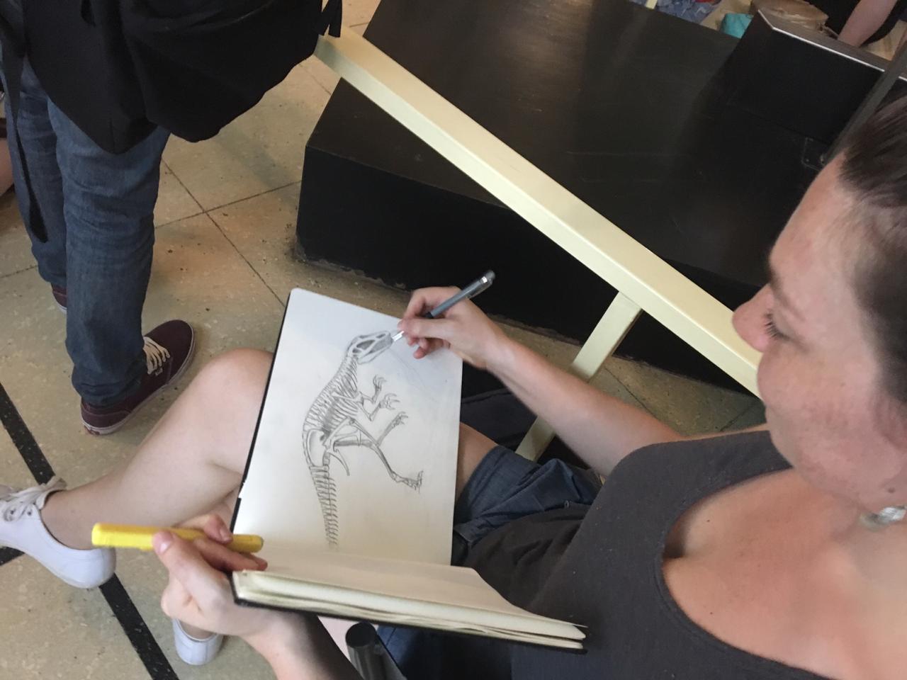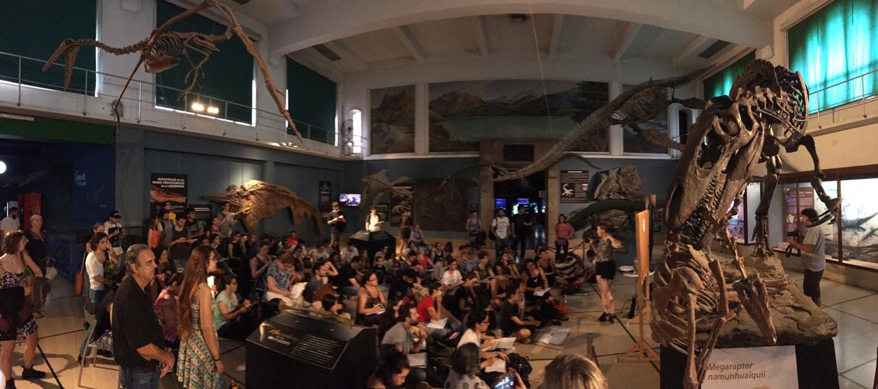 Más de un centenar de personas se reunió el último 23 de febrero en la Sala de Paleontología de Vertebrados, para participar de una sesión especial de dibujo abierta al público. La actividad estuvo enfocada en las exhibiciones de dinosaurios y estuvo a cargo de la profesora María Zancolli, docente de la Carrera de Dirección de Animación y Multimedia de la Universidad del Cine.