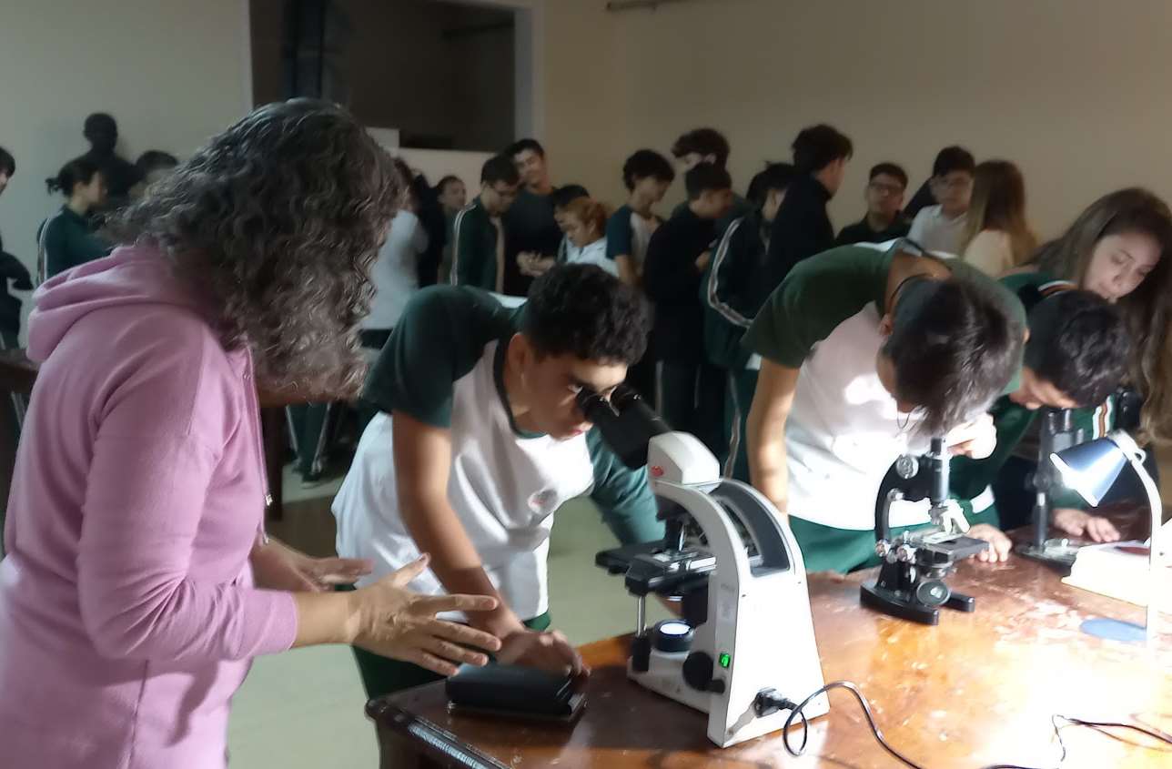 Foto 3: Alumnos de 2do. año del Instituto Hijas de Jesús-CABA participando en la charla sobre etnobotánica, brindada por el Dr. Gustavo Scarpa.