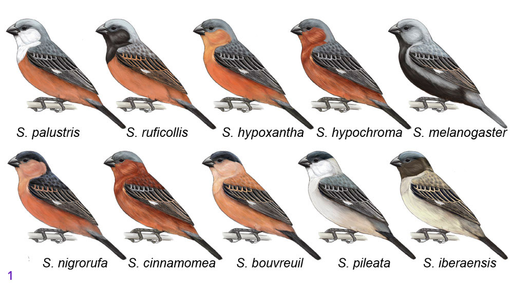 Una primera parte de la investigación consistió en analizar las diferencias a nivel genómico en tres especies cuyo plumaje sólo se diferencia por el color del parche de su garganta: el capuchino canela (Sporophila hypoxantha), el capuchino garganta café (S. ruficollis), y el capuchino pecho blanco (S. palustris).