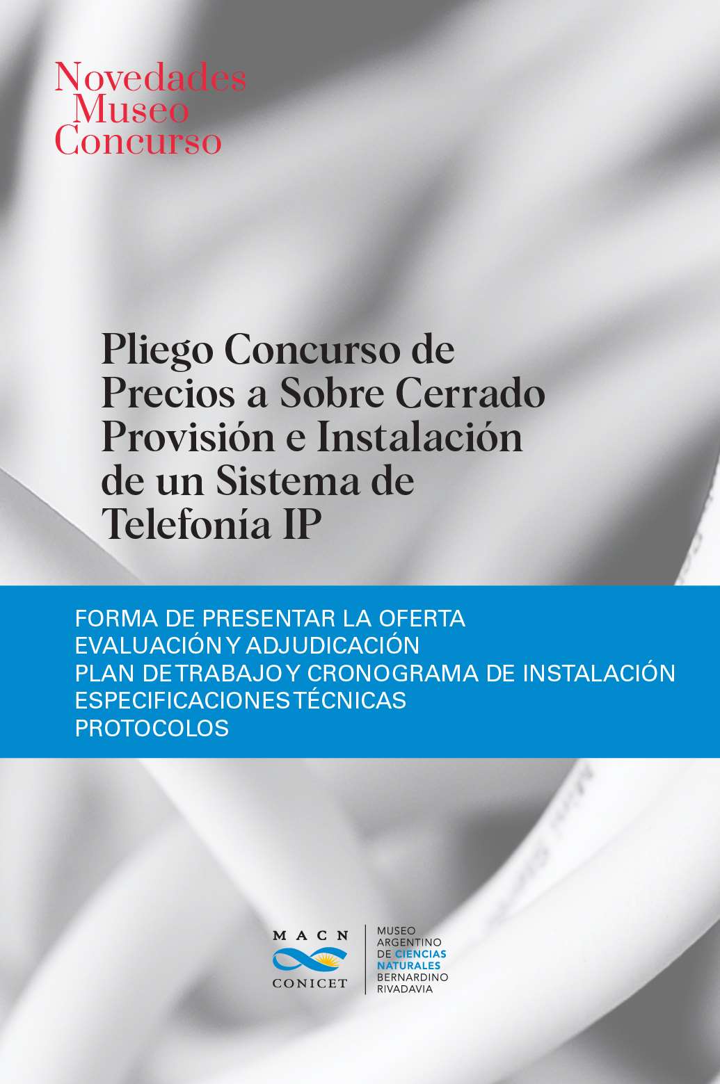 Se informa que se prorrogó la fecha de apertura  de la oferta para el Concurso de Precios por la “Provisión de un Sistema de Telefonía IP para el MUSEO ARGENTINO DE CIENCIAS NATURALES “BERNARDINO RIVADAVIA”,  programada para el día 14/04/2023 a las 14:00 hs.  para el día 21/04/2023 a las 14:00 hs.