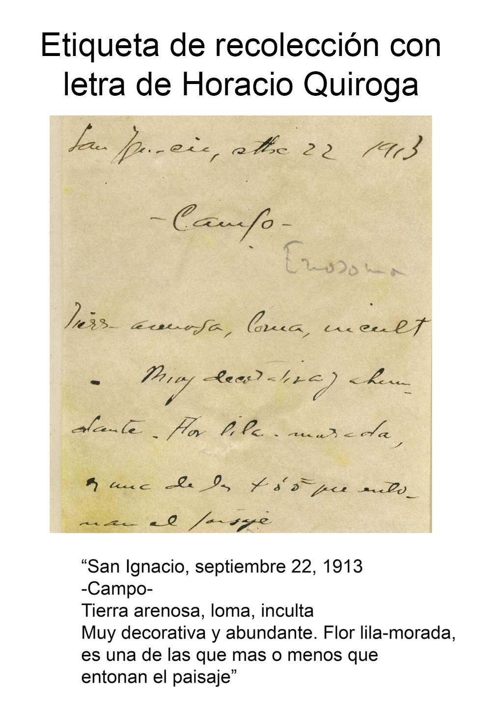 En 1908, Quiroga vivirá en la selva misionera, en San Ignacio, donde llevará a cabo diversas actividades como plantaciones, caza, cría de animales y la recolección de plantas en los alrededores del pueblo. Años después publicará “Cuentos de la selva”, seguramente influenciado por la grandiosidad de la vegetación de la selva cuyos registros de plantas desde hace más de 100 años se resguardan en el Museo para conocer, estudiar y conservar la biodiversidad de nuestro país.