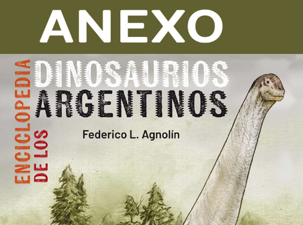 Este anexo pertenece al libro "Enciclopedia de los Dinosaurios Argentinos" publicado por la editorial Albatros y escrito por el Dr. Federico Agnolín, investigador de nuestro Museo. Abarca las especies no incluidas en el libro impreso y con ellas se completa la totalidad de los dinosaurios encontrados en territorio argentino.