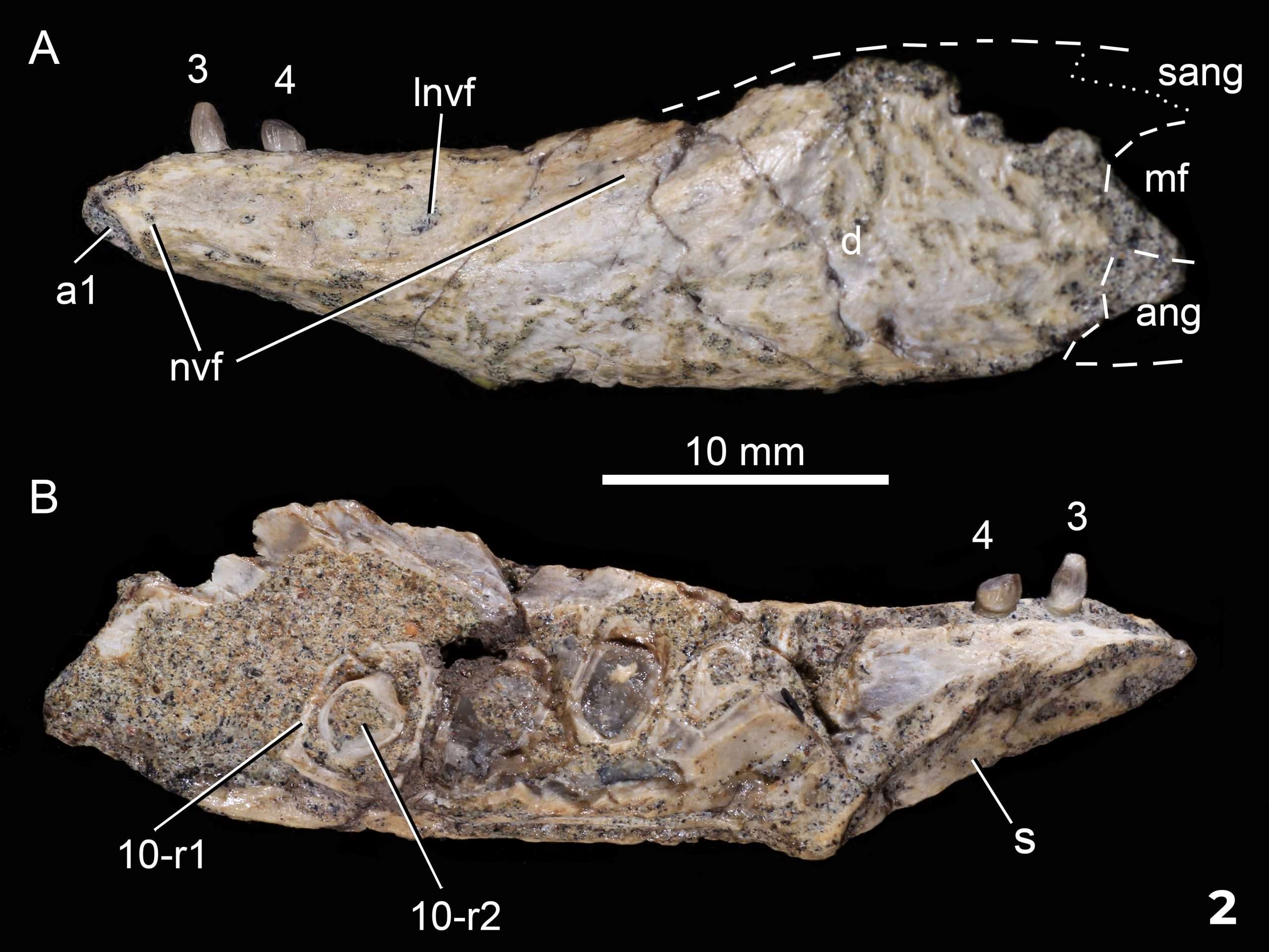 Imagen 2. Mandíbula fósil del crocodiliforme Eptalofosuchus viridi.