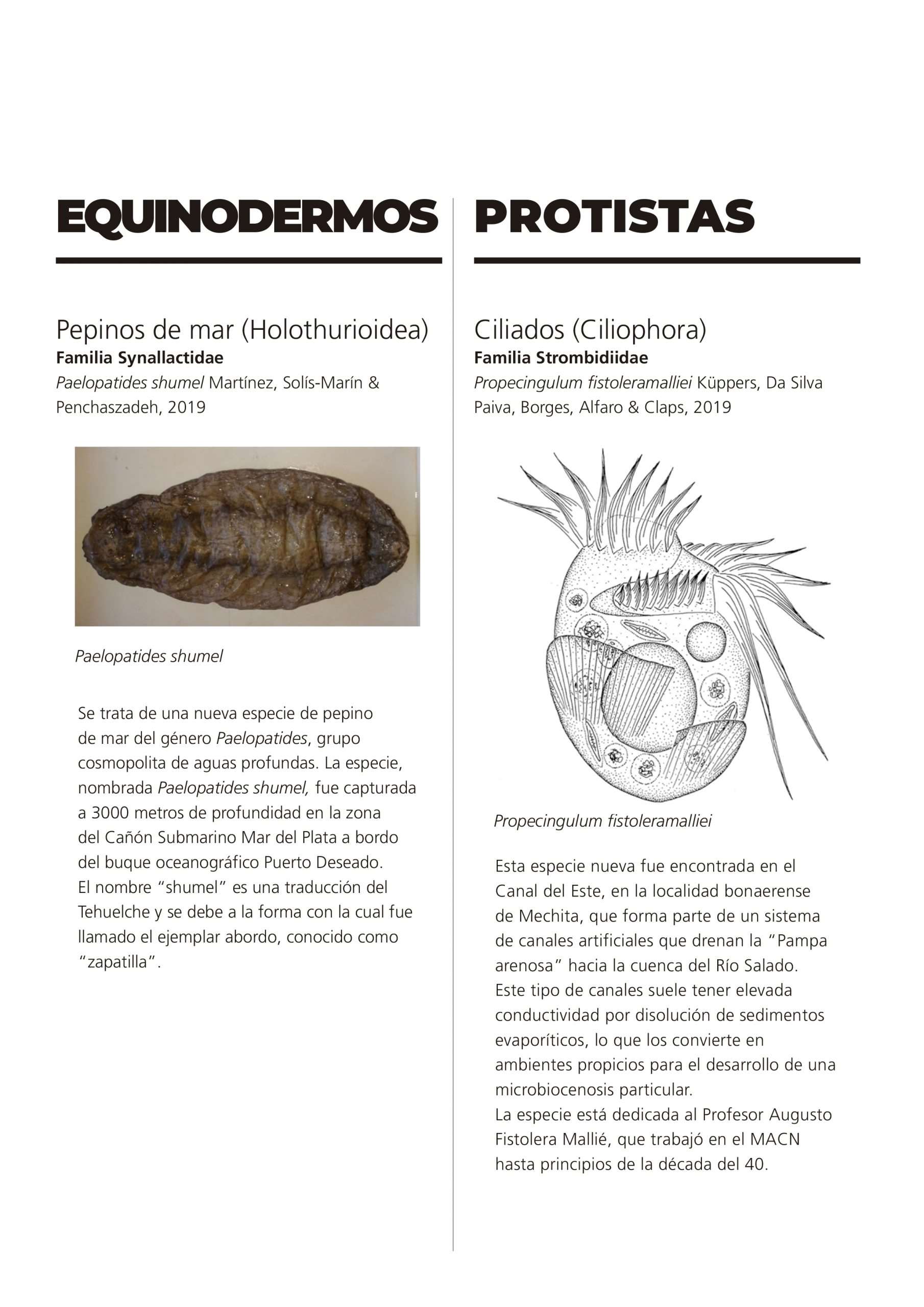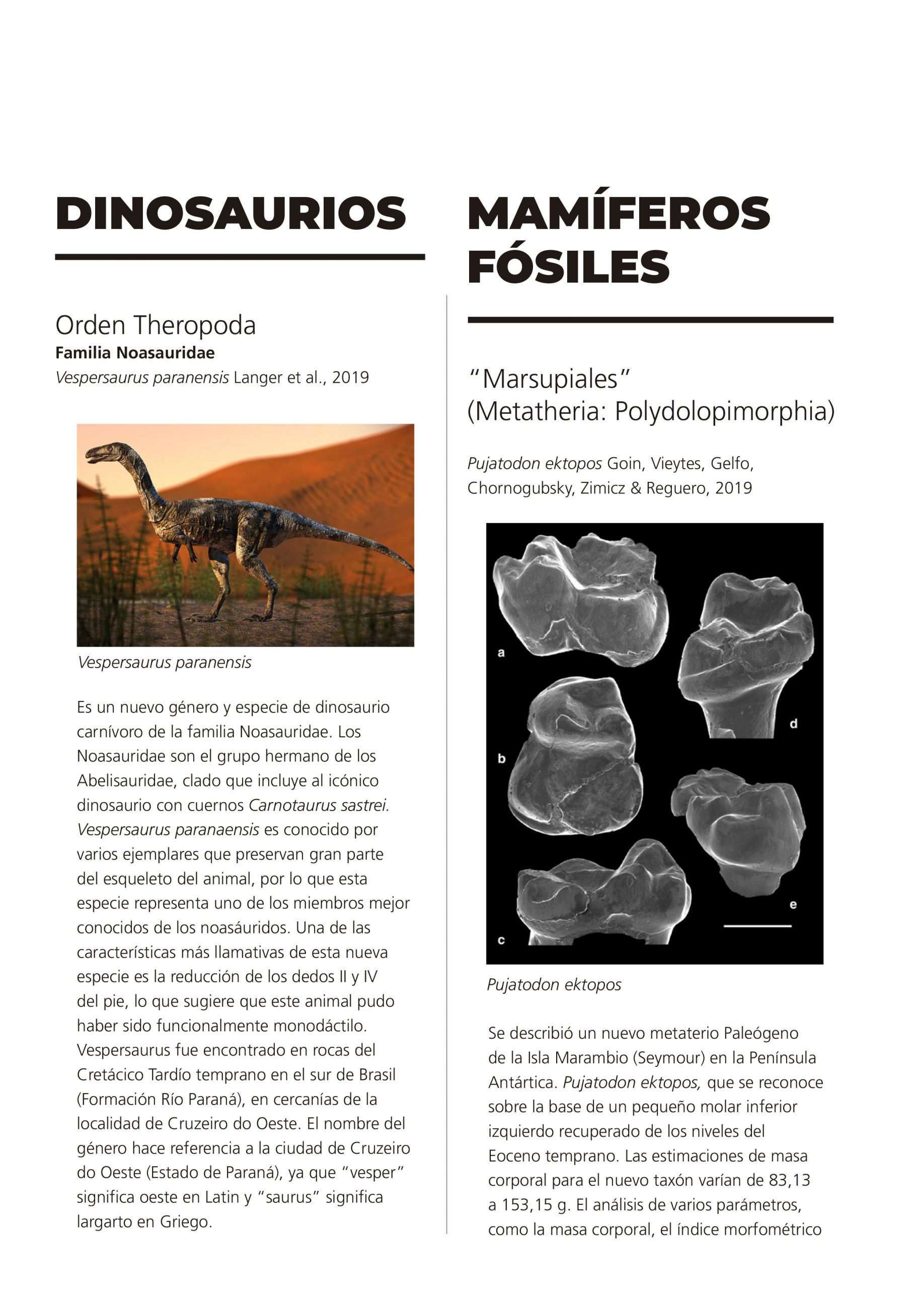 Durante 2019 los científicos y científicas del Museo Argentino de Ciencias Naturales “Bernardino Rivadavia” describieron 49 nuevas especies, desde ranas, lagartos, insectos y arácnidos hasta almejas, protozoos, peces, y grandes dinosaurios y mamíferos fósiles. La mayoría de las nuevas especies descubiertas son de Argentina y países de la región, aunque varias son de otras regiones, como América del Norte, Madagascar y Myanmar.