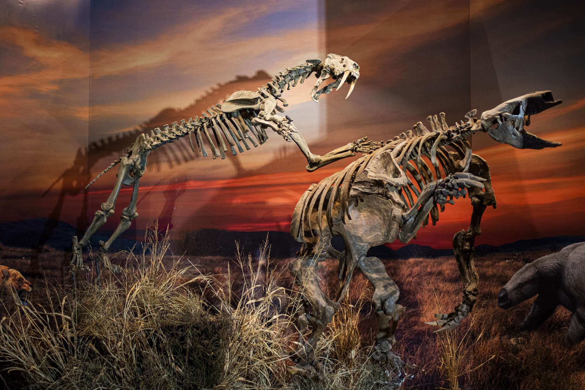Conjuntamente, y como escenario de fondo en el espacio “Tierra de Dinos” (Tecnópolis), se inauguró la exhibición de una escena Pleistocénica que representa la lucha entre el tigre dientes o Smilodon populator y el perezoso Scelidotherium; ambos aportados por el museo (MACN dependiente de CONICET).