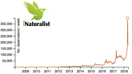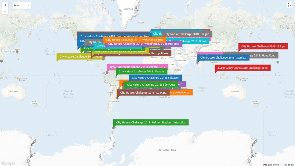 Entre todos los 16.927 observadores y 4.557 identificadores, se relevaron 18.343 especies mediante 429.874 observaciones (https://www.inaturalist.org/projects/city-nature-challenge-2018?tab=stats), alcanzando entre todos el pico histórico de observaciones desde que existe iNaturalist