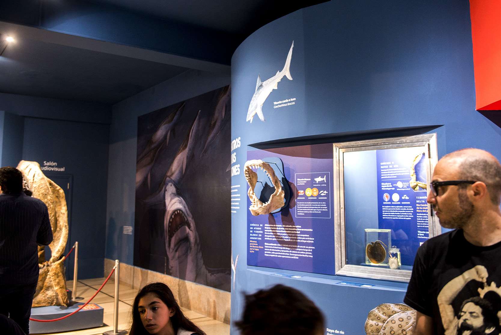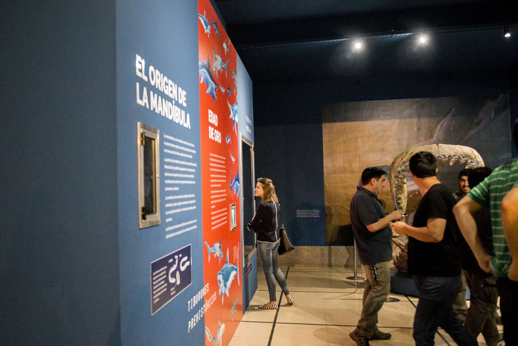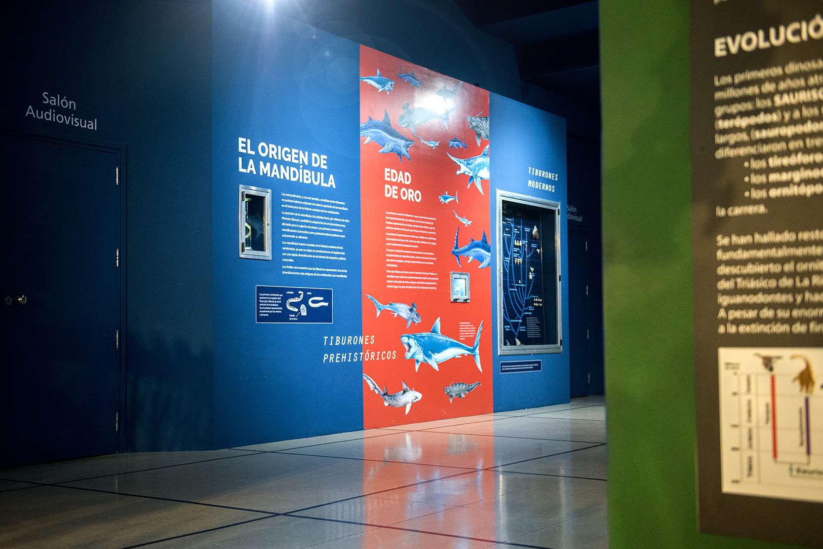 Una colección única de dientes fósiles de distintos tiburones nos muestra cómo evolucionó este grupo de peces a partir de los primeros vertebrados sin mandíbula. La reconstrucción en tamaño real de la mandíbula del tiburón Megalodón (Carcharocles megalodon) permite tomar dimensión del tamaño de uno de los mayores predadores marinos que haya existido.