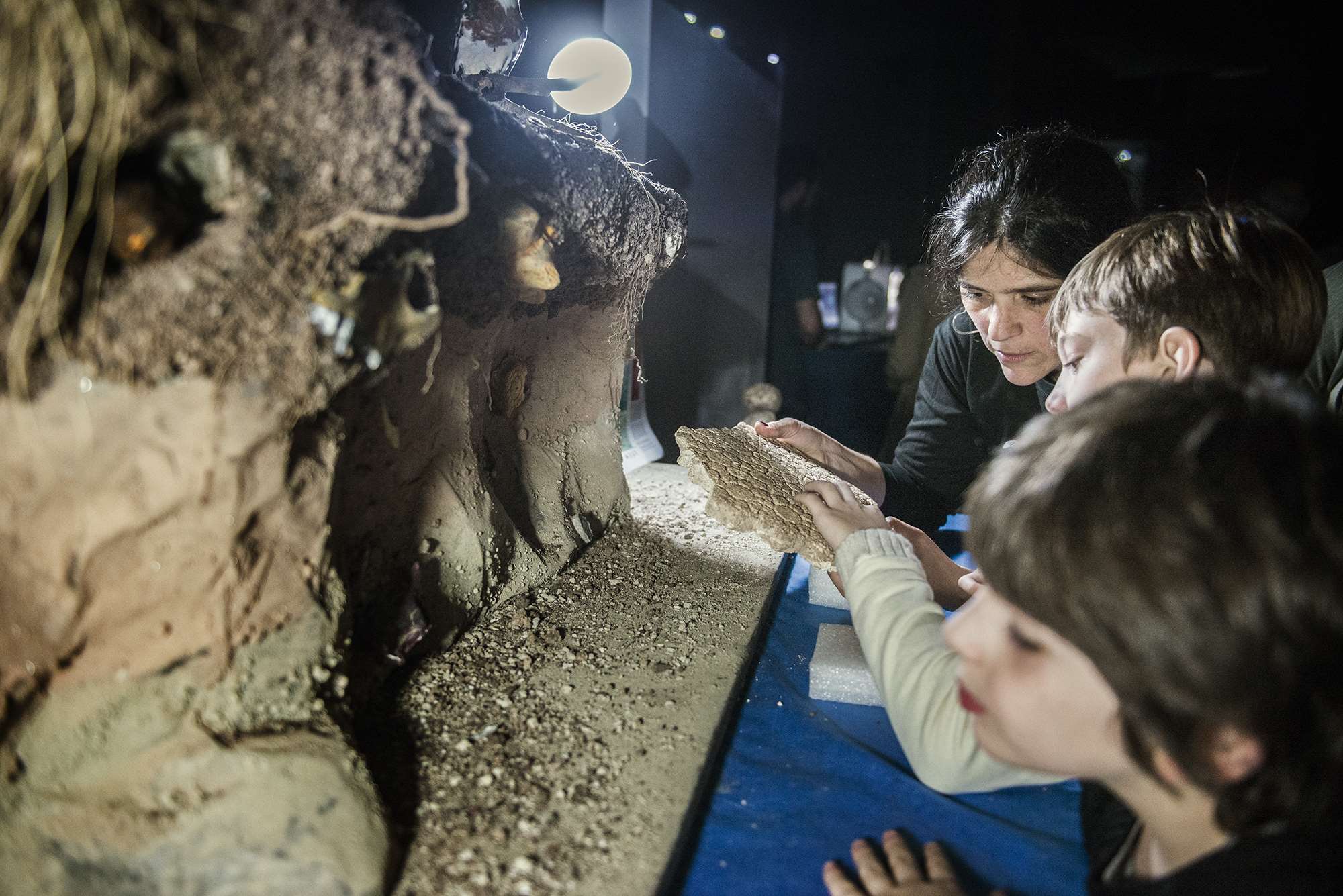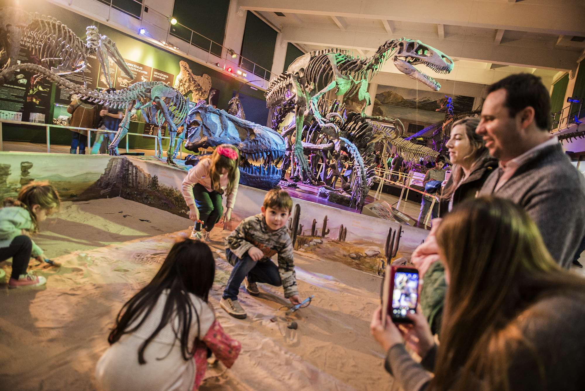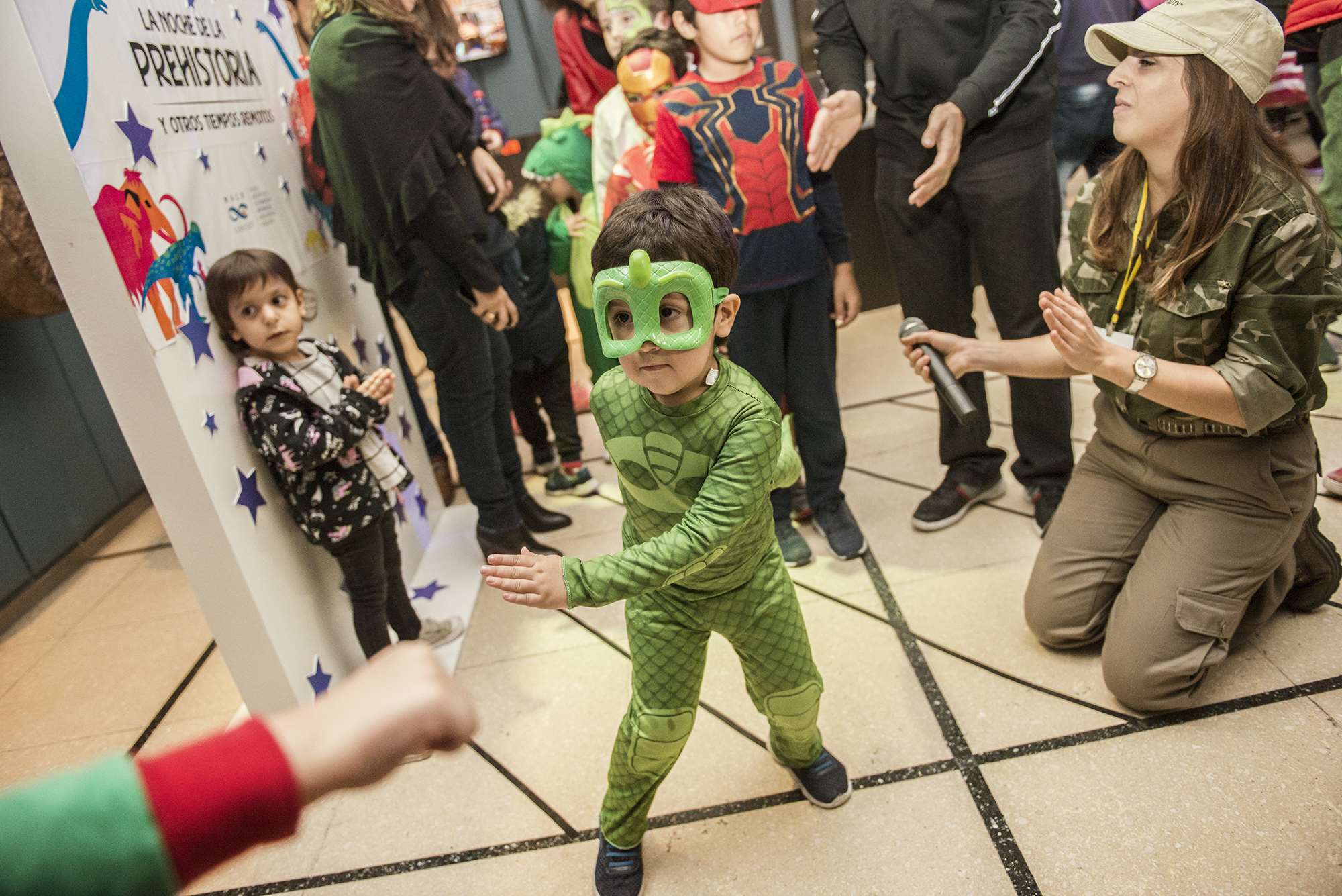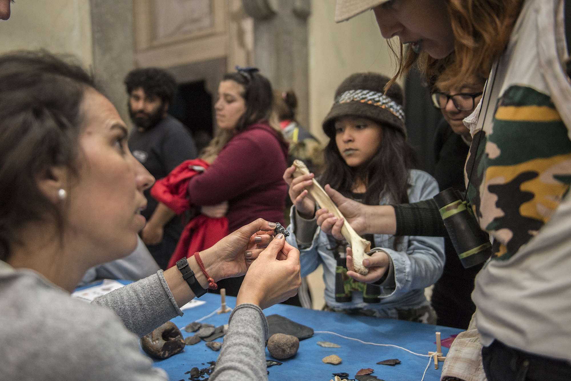 Lo más llamativo de la noche fue la representación actoral de un hombre prehistórico dentro de una vitrina en la sala de Mamíferos; los sorprendidos visitantes observaron recreaciones de situaciones y conductas de nuestros ancestros en su vida cotidiana.