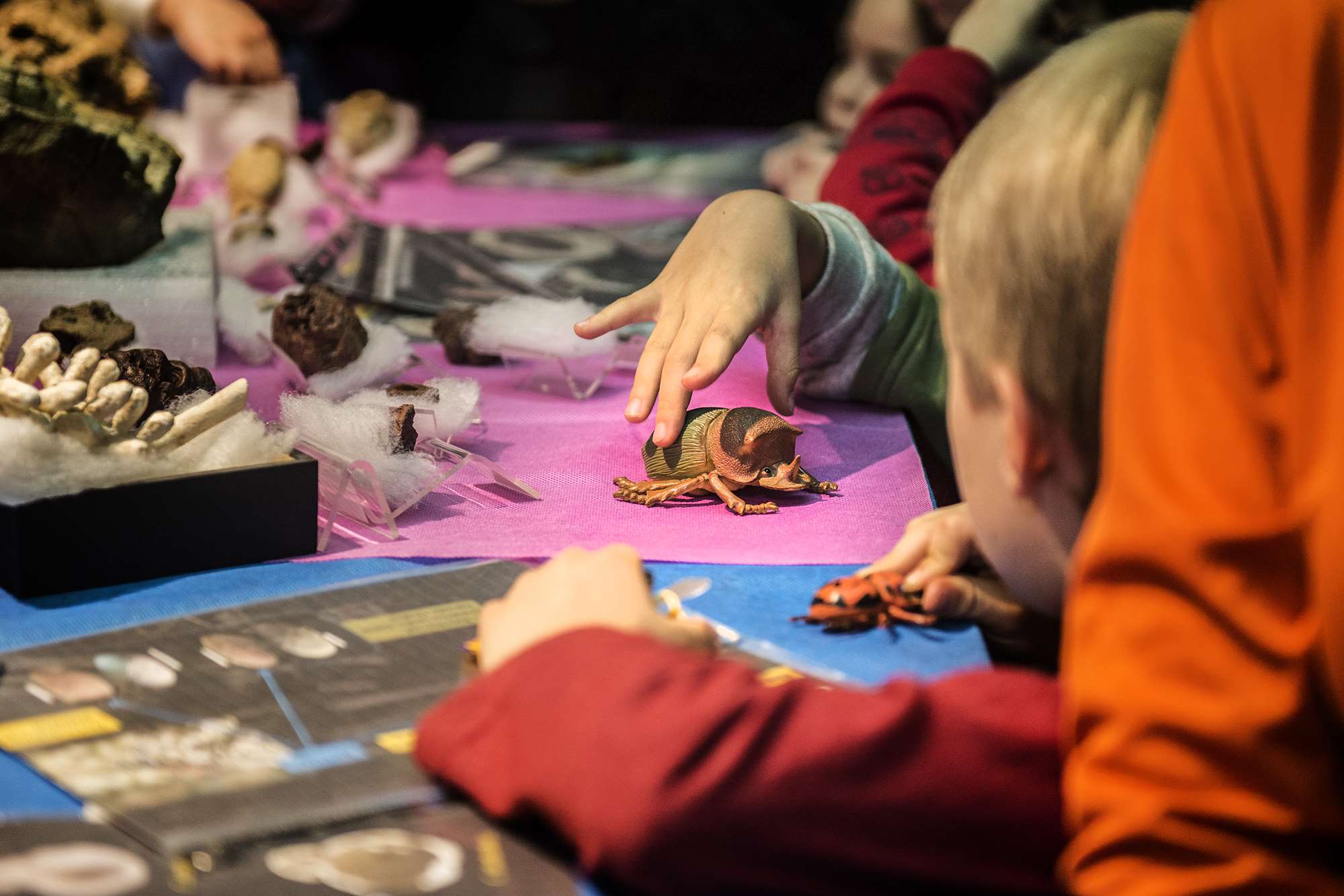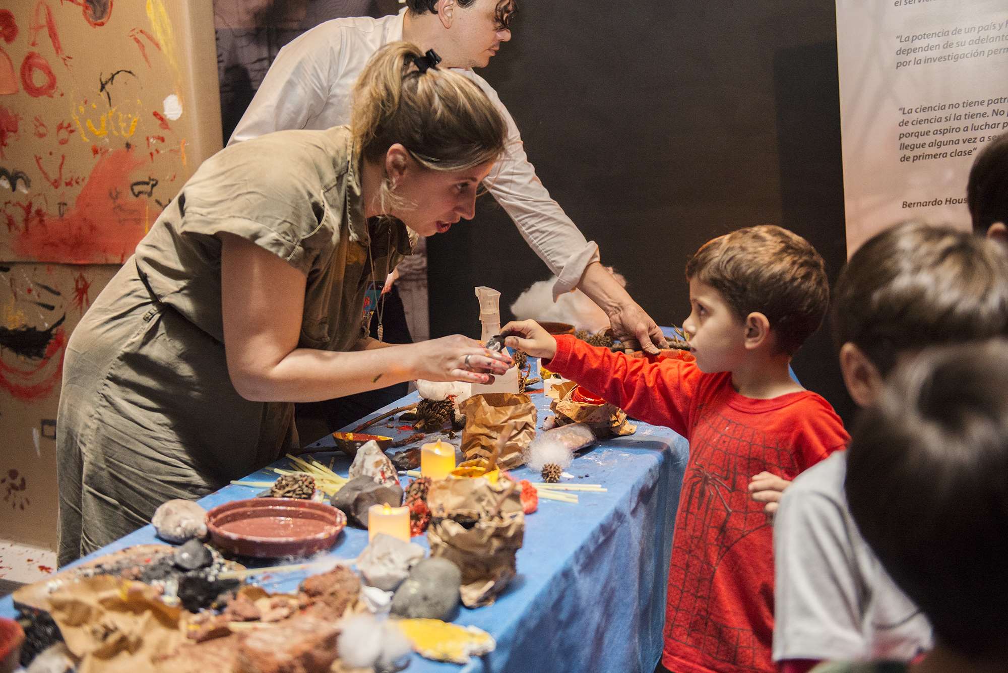 Se presentaron una decena de mesas científicas, donde investigadores del Museo e invitados, hicieron demostraciones a través de propuestas lúdicas e interactivas. Se abordaron temáticas como el trabajo del paleontólogo y arqueólogo, los fósiles, el tiempo geológico, el trabajo de extracción de fósiles, los animales extintos y el hombre, etc.