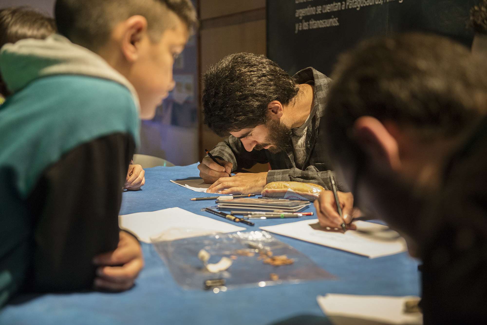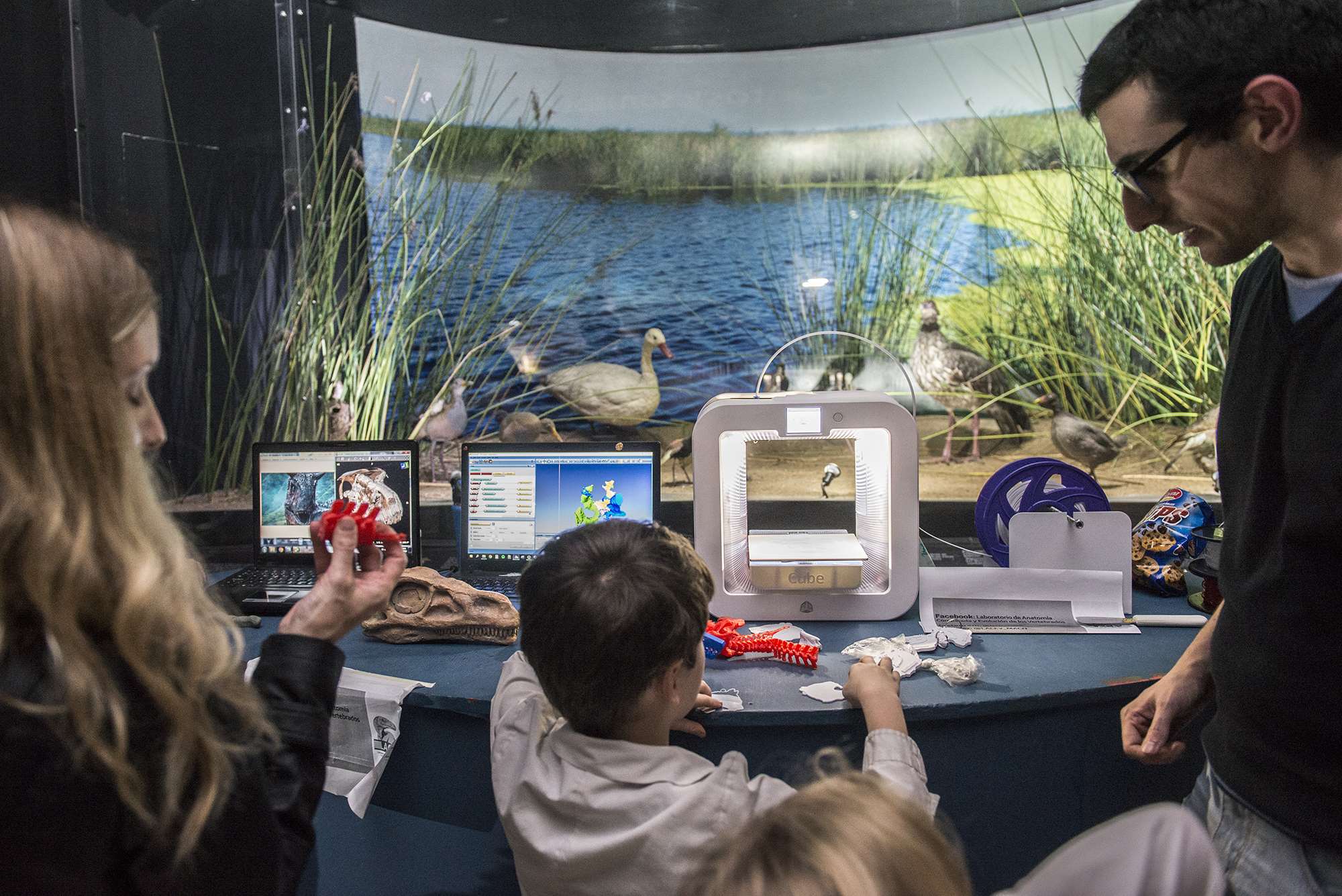 Por otra parte paleo-artistas, que trabajan en conjunto con los paleontólogos, mostraron su arte y enseñaron algunas técnicas de dibujo científico, y esculturas en cartón. También se pudo ver en funcionamiento como una impresora 3D puede reconstruir el cráneo de un animal extinto.