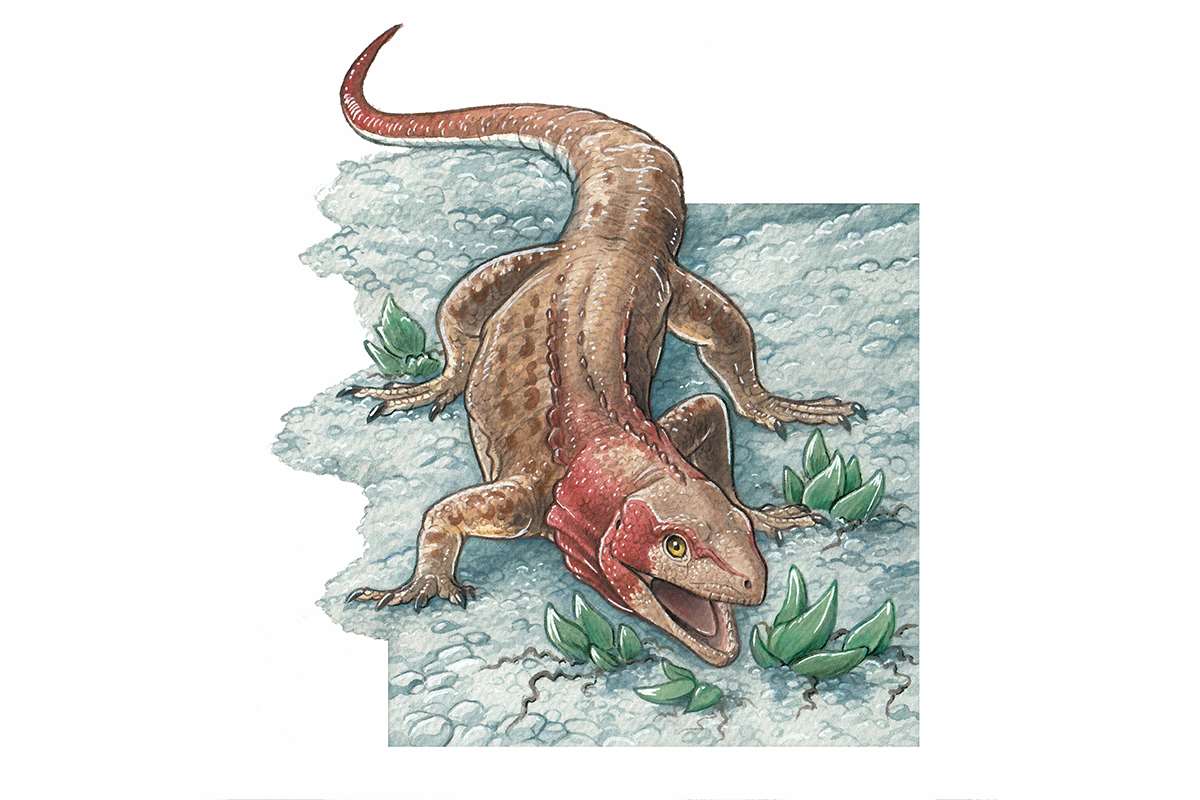 Los esfenodontes o tuátaras (Sphenodon) son un grupo de reptiles que en la actualidad se encuentra representado solo por dos especies que habitan en algunas islas de Nueva Zelanda. Sin embargo, durante la Era Mesozoica -también conocida como la Era de los Dinosaurios-, diversas especies de tuátaras podían encontrarse dispersas en la mayor parte de los continentes.