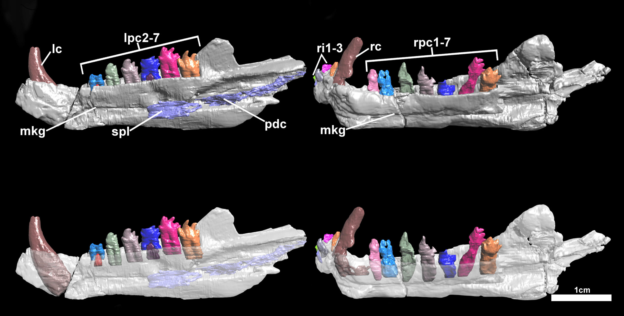 -Reconstrucción 3D de la mandíbula fósil de Agudotherium gassenae.