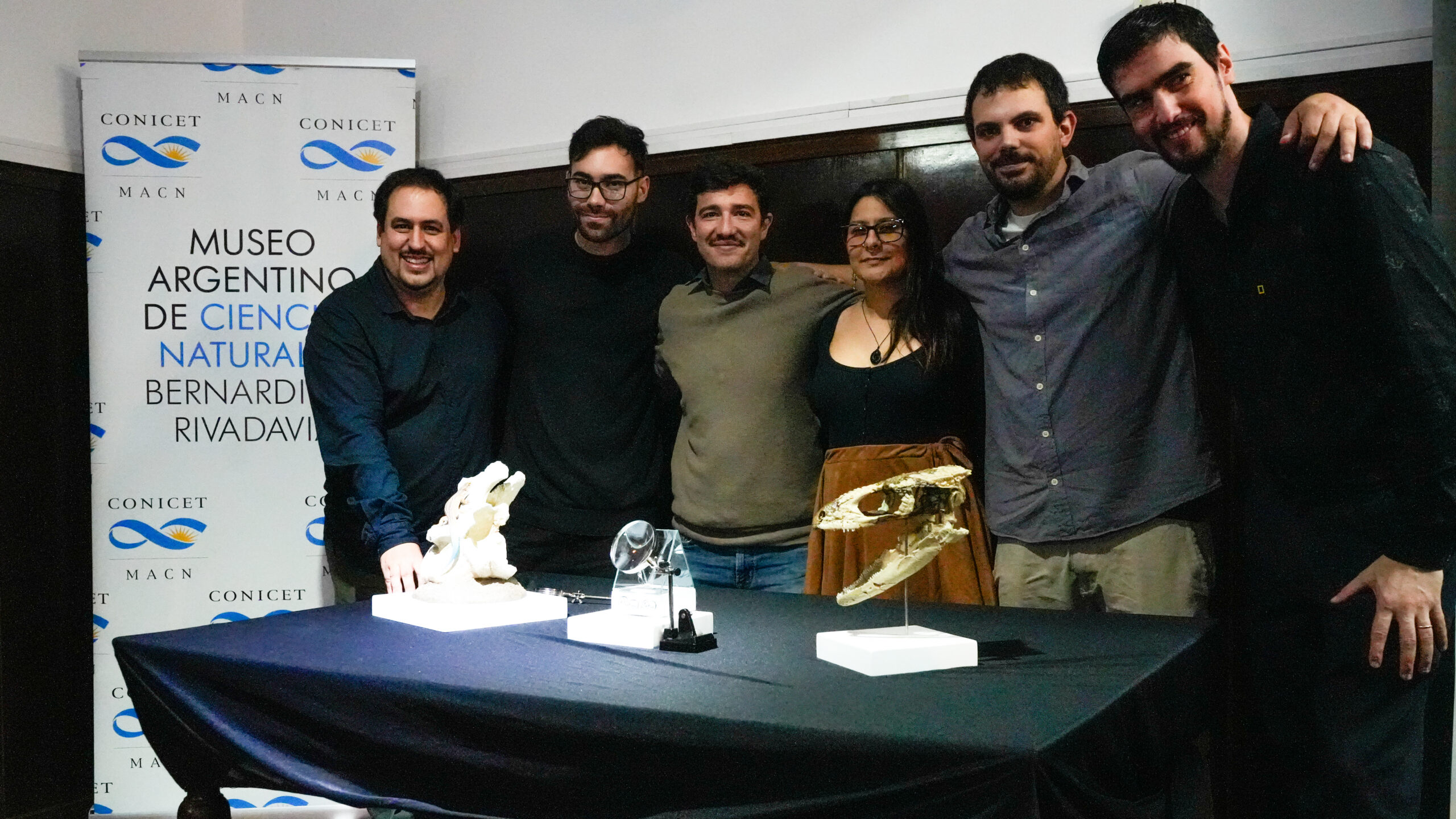 En una conferencia de prensa realizada hoy en el Museo, integrantes del equipo de investigación presentaron oficialmente el descubrimiento ante autoridades y medios de comunicación. Durante la actividad se exhibió una réplica del ejemplar y se compartieron detalles del hallazgo, que tuvo lugar en sedimentos de la Formación Allen, en la provincia de Río Negro.