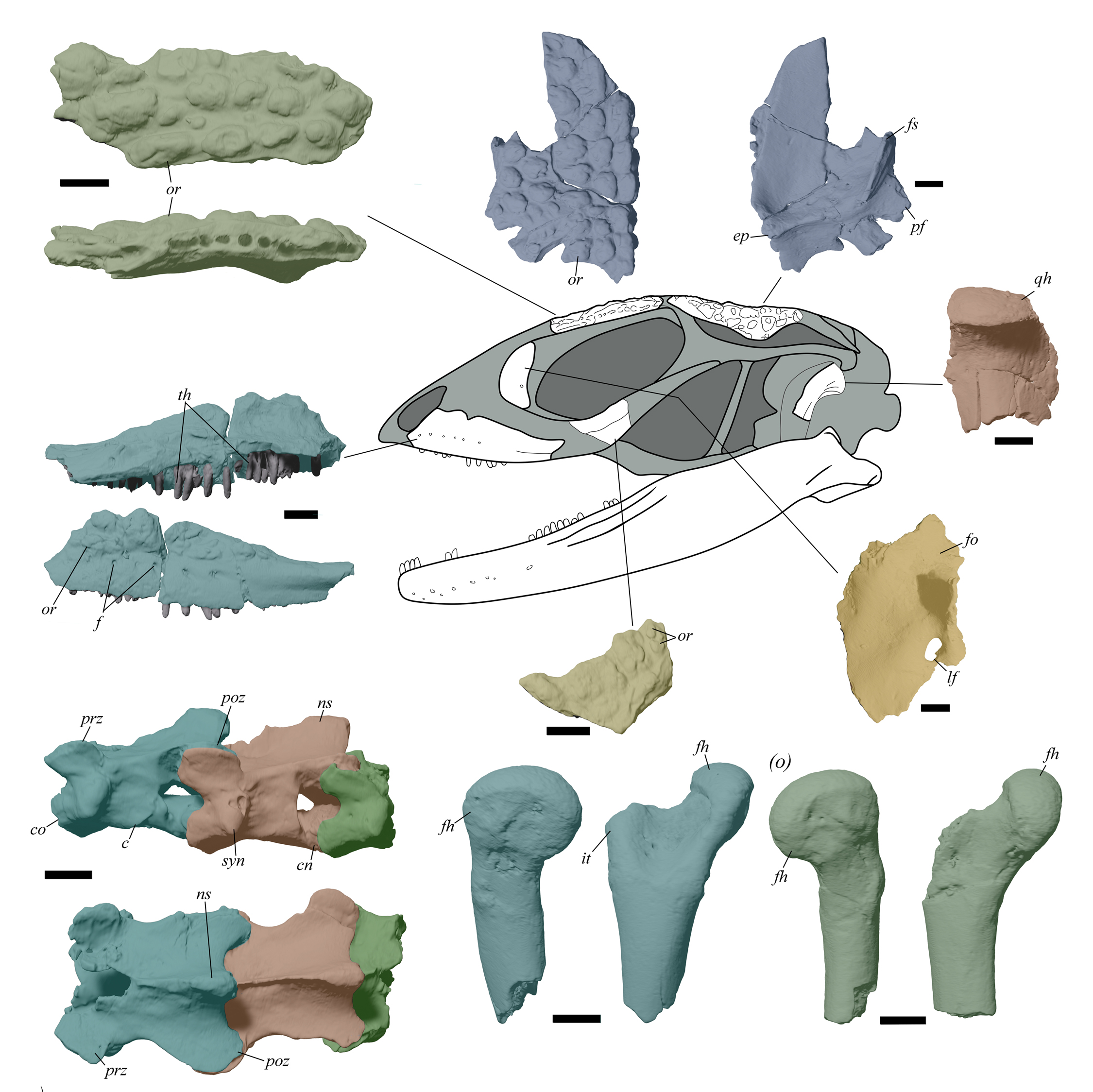 “La anatomía es muy extraña: tiene una mandíbula muy finita y un cráneo, que por el contrario, está muy ornamentado con unos tubérculos particulares, algo que no habíamos visto nunca antes”, destacó Federico L. Agnolín, primer autor del trabajo.
