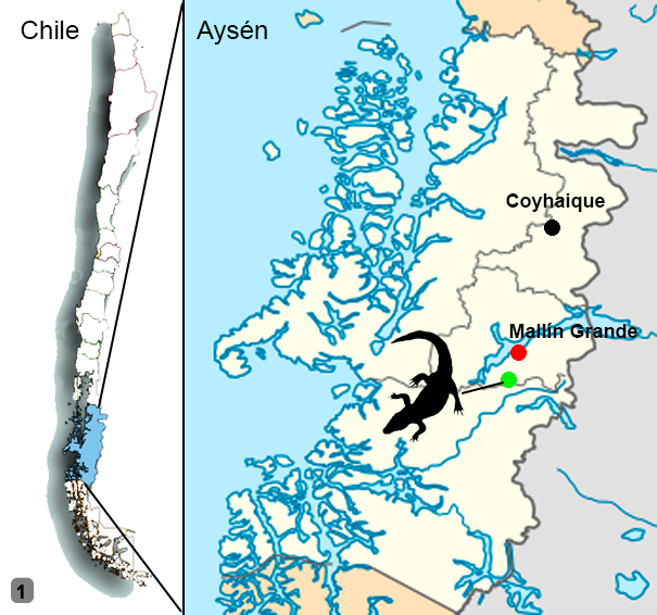 1. Mapa de Chile señalando lugar de hallazgo de Burkesuchus mallingrandensis