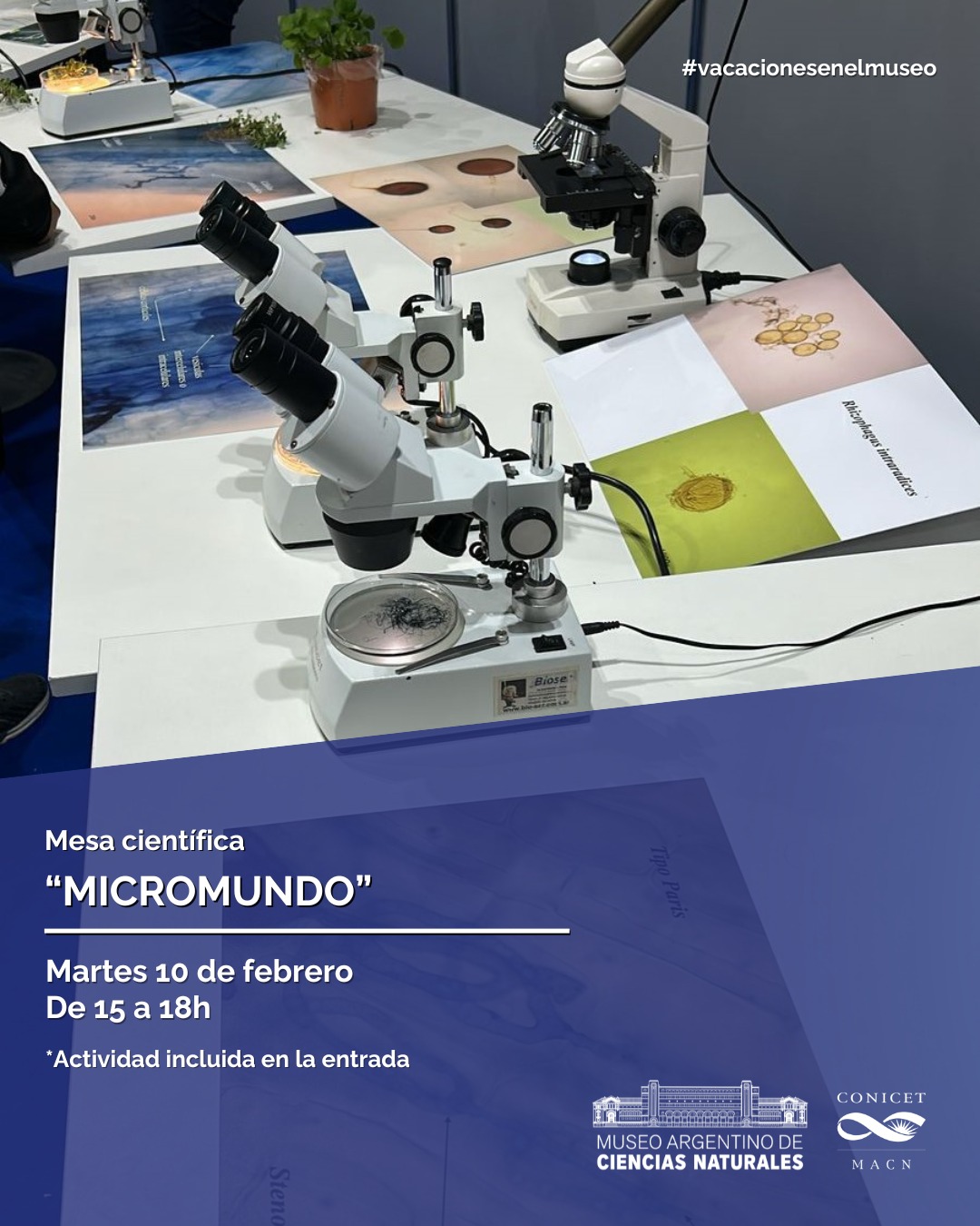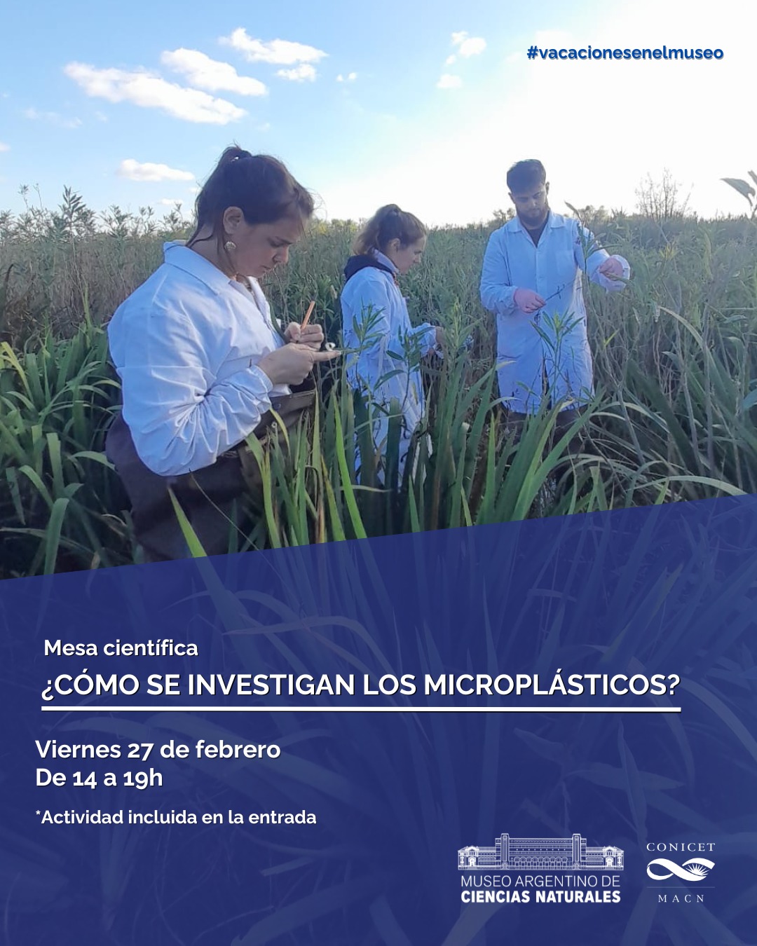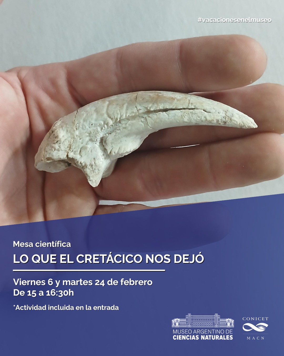 Durante el mes de febrero, nuestros visitantes podrán participar de cuatro mesas científicas a cargo de investigadores e investigadoras del Museo Argentino de Ciencias Naturales, quienes compartirán sus trabajos y sus experiencias acompañados con muestras, materiales y las herramientas que utilizan a diario.